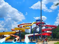 Outdoor water park with a big kids' area. Sprawling outdoor water park with a large kids' area, a lazy river, a wave pool & multiple slides.